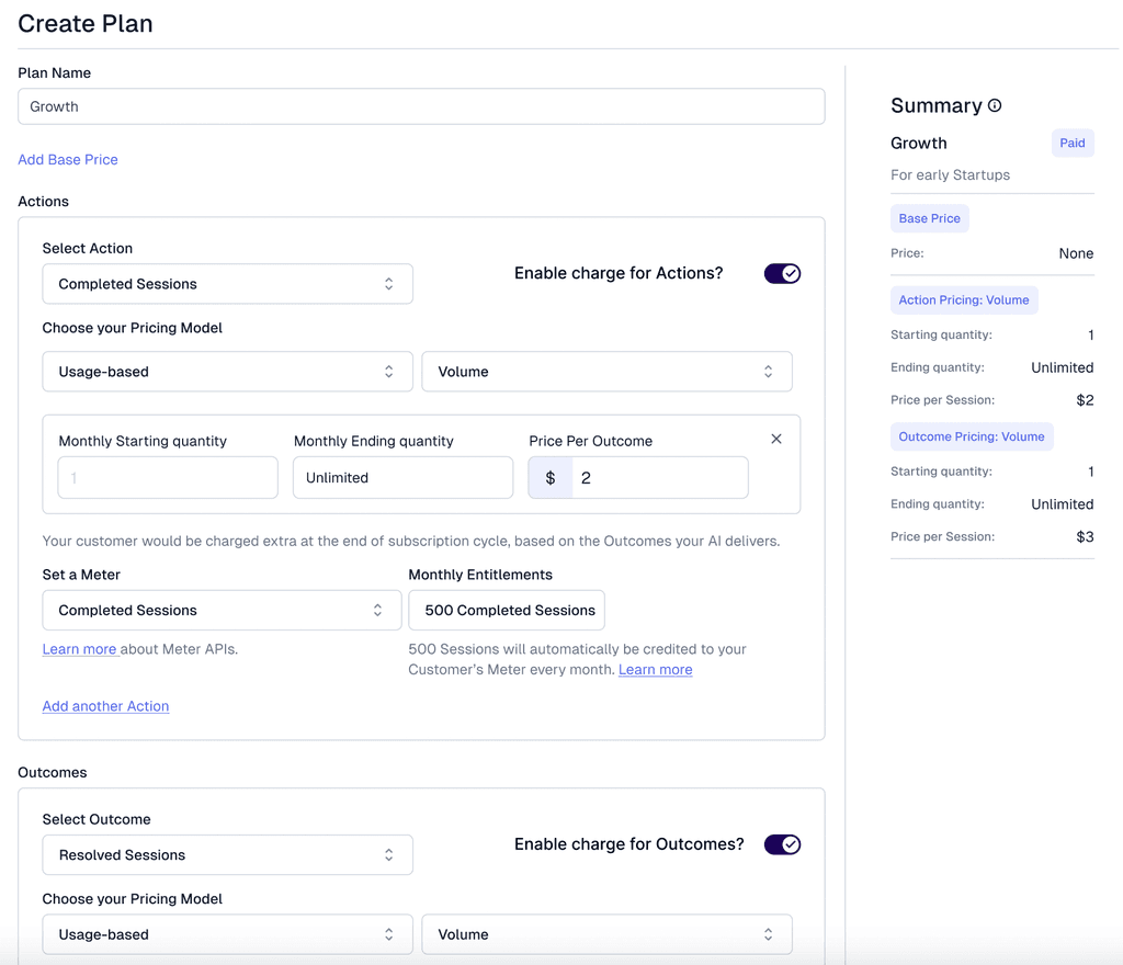 Charge for outcomes, workflows, actions — the real value your agents deliver.